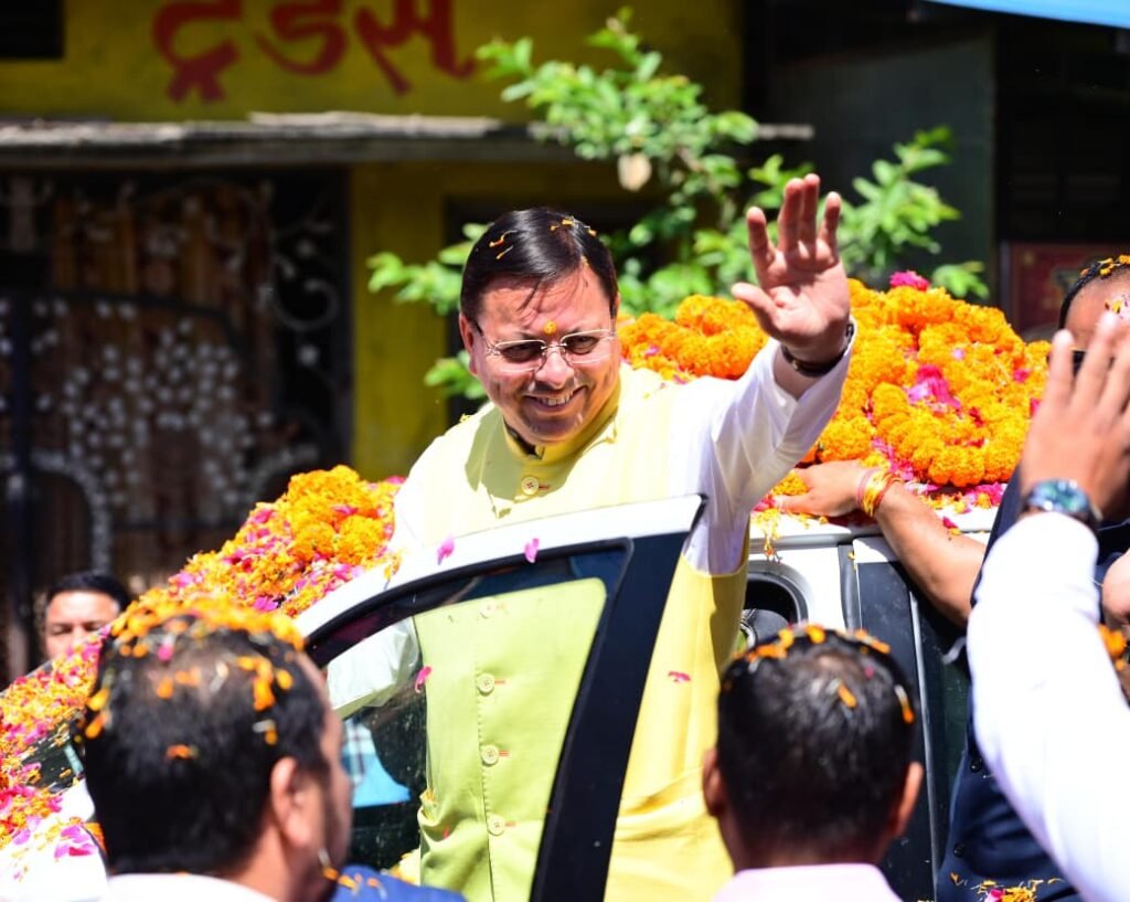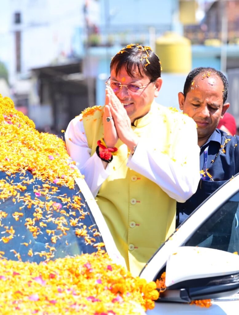 मुख्यमंत्री का रोड शो में जनता व जनप्रतिनिधियों ने पुष्पवर्षा कर भव्य स्वागत किया।